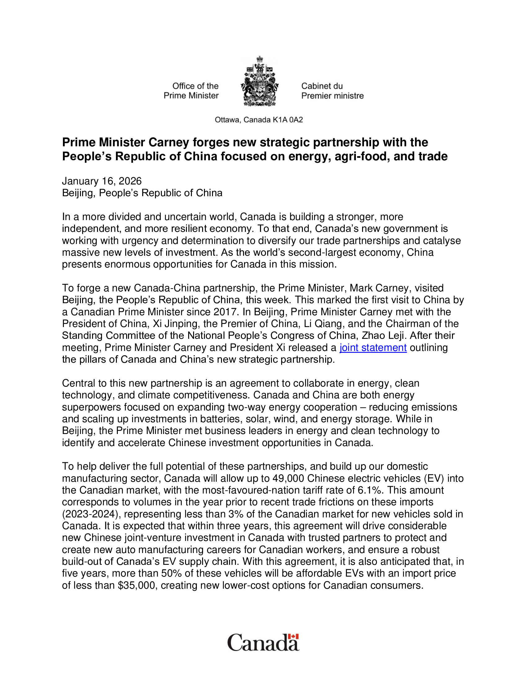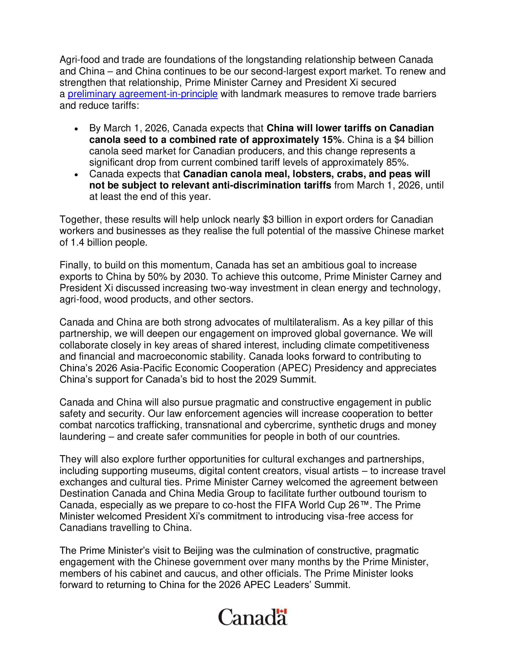 Source: Prime Minister's Office, via MP, to MCETA, Canada